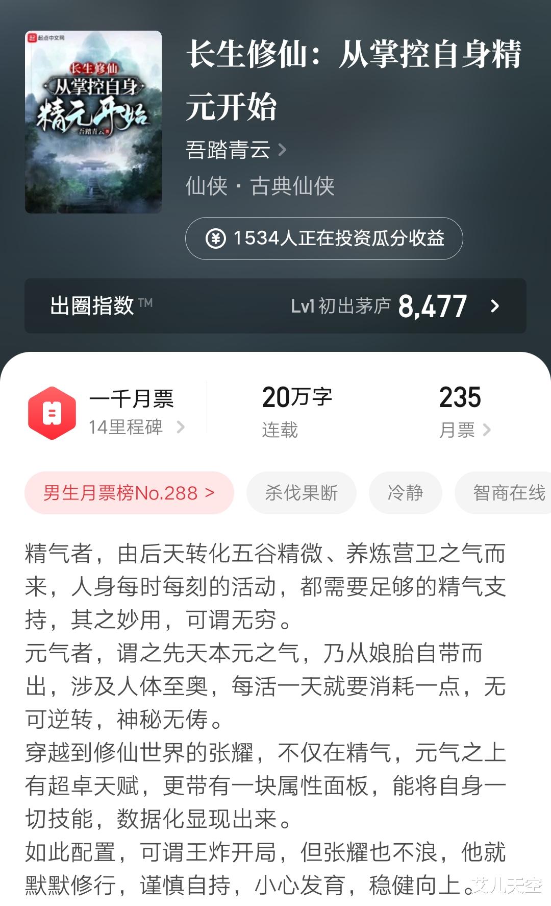 2、《长生修仙:从掌控自身精元开始》首订4638