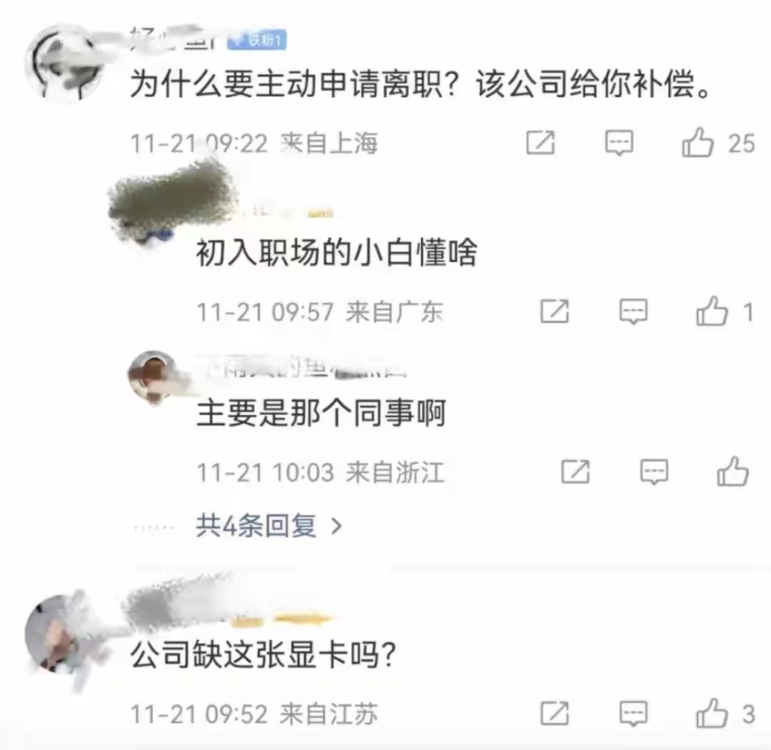 在经过公司多轮“约谈”后,虽然公司最终未强行索要显卡,但暗示其“另谋高就”。最终,小金在19日,提交了离职申请。