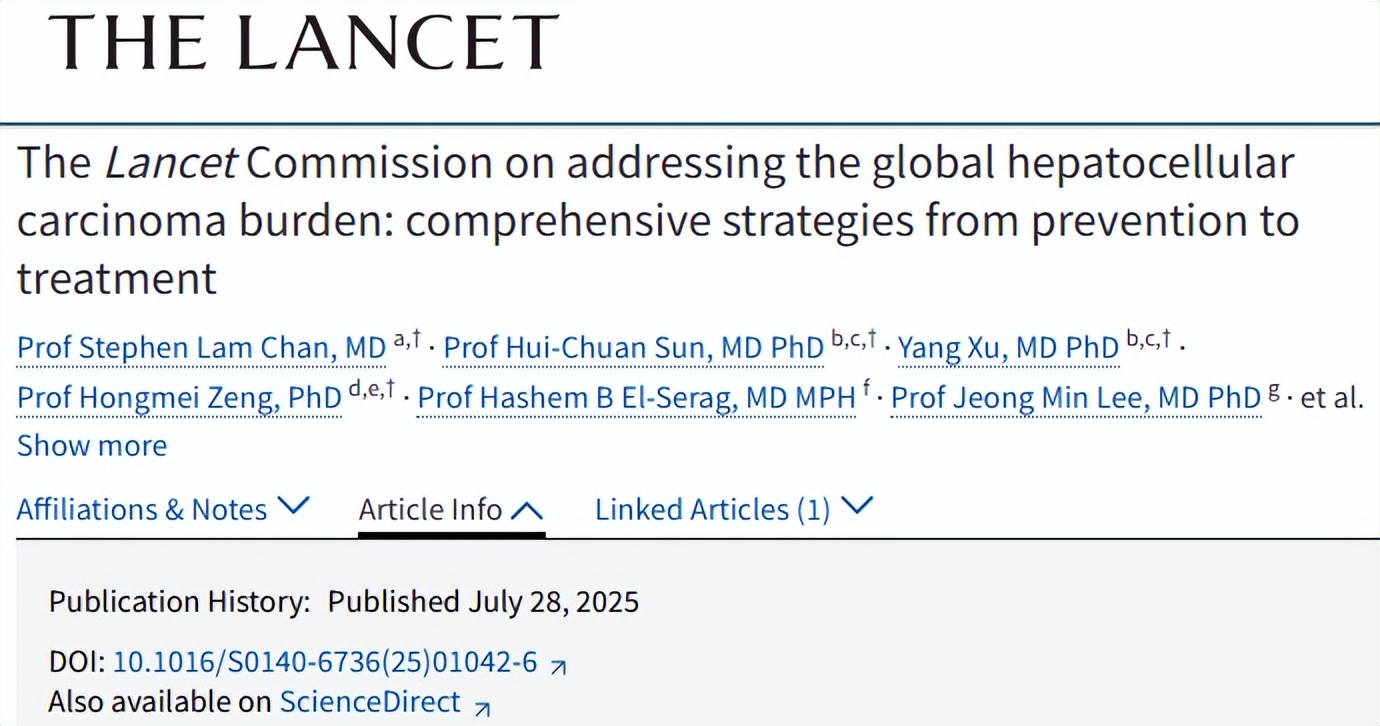 去年7月,复旦大学附属中山医院周俭教授、樊嘉院士领衔国内外多家医疗机构专家,完成的全球肝癌报告,在《柳叶刀》期刊上成功发表。