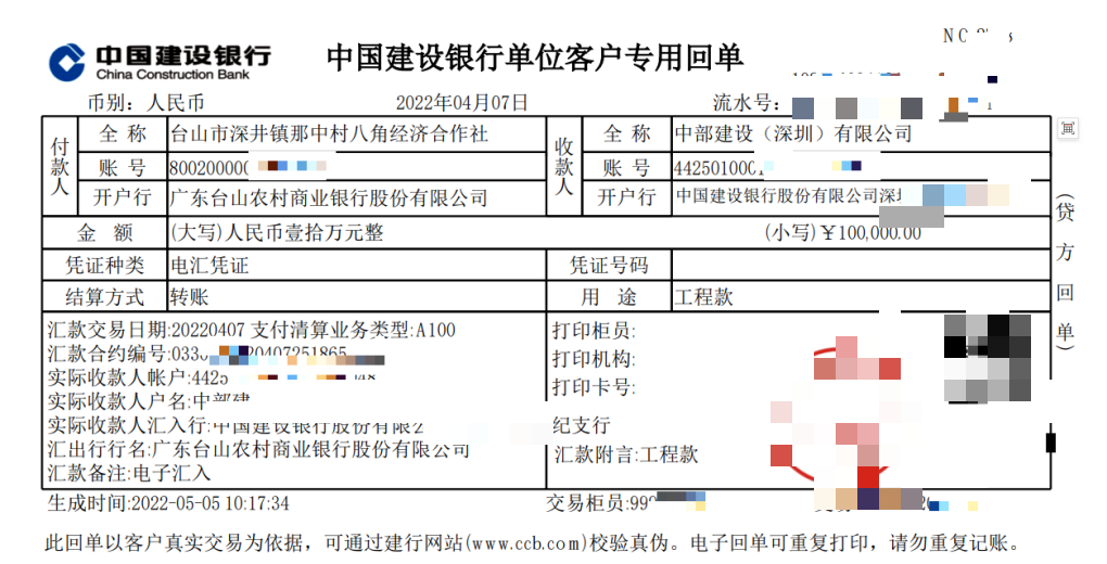 (部分入账回单,当事人提供)