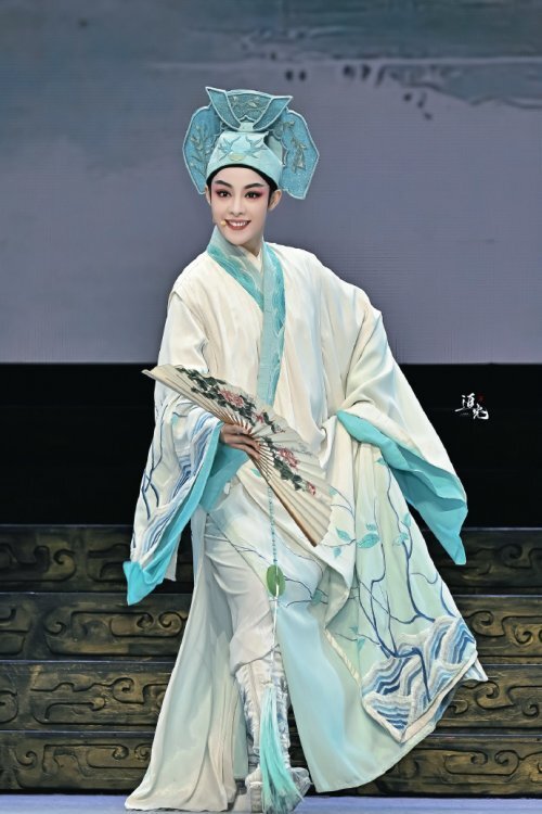 《梁山伯与祝英台》中,陈丽君通过轻盈的台步、翻飞的水袖和灵动的扇子,将梁山伯得知祝英台是女儿身且对自己有意后的狂喜展现得淋漓尽致。