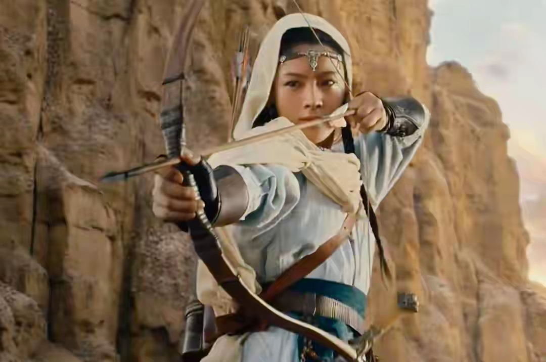 充满野性的西域造型,行云流水般的武打动作,眼神中的霸气和骑马射箭的干脆利落,打破内娱侠女“慢镜头加特效”的套路,一招一式都是真功夫。