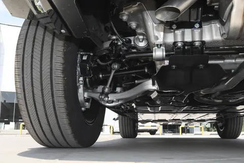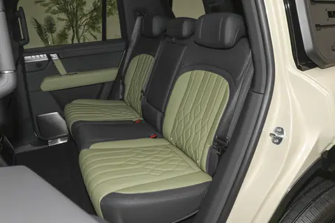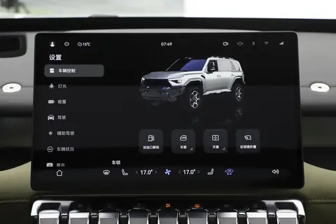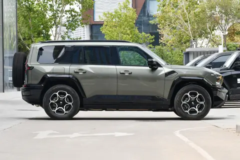 底盘的表现也很亮眼,采用前后双叉臂悬架和全铝底盘,重量更轻,驾驶起来比我印象中的传统越野车要轻盈不少。它的空气悬架能上下调节 150mm,在越野场地里,我把底盘升高 105mm,最小离地间隙达到 333mm,遇到坑洼路面和凸起的石块,完全不用担心剐蹭到底盘。等开回城市道路时,降低底盘后,车辆的稳定性和舒适性也明显提升了。双向 20° 的后轮转向功能特别实用,在场地里狭窄的小道行驶时,最小转弯半径只有 5.2m,很多看起来需要倒一把才能转过的弯道,它一把就通过了。还有低速越野辅助功能,爬坡过坎的时候,我只用控制好油门深浅,车辆就能平稳控制车速,避免了因为制动不及时导致车速失控的问题。在场地的开阔处,我还试了试原地掉头功能,低速状态下锁死一侧后轮,3.5m 的掉头半径,让车辆在狭小空间里也能轻松掉头。这种功能在野外遇到障碍物时,能省去很多倒车、挪车的麻烦。另外,这台车的最大涉水深度能达到 900mm,试驾时遇到一段积水路段,我平稳开了过去,完全不用像开普通轿车那样小心翼翼地绕路。长时间在场地里高强度行驶,我还留意了一下发动机的温度,一直保持得很稳定。工作人员介绍,它搭载了 3kW 的高压风扇,机舱散热能力提升不少,就算在沙漠高温环境下,也能维持稳定的动力输出,这点对于长途越野来说特别重要。而且这台发动机经过了高原认证,在海拔 2500 米的地方动力衰减也比较小,以后要是开着它去川西、青海这些高原地区自驾,也能放心不少。