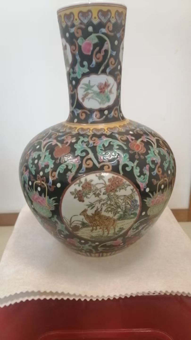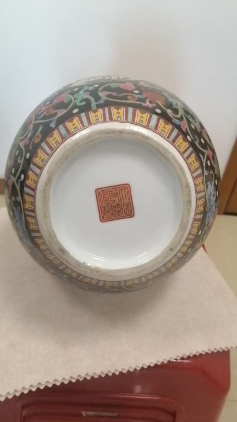 收藏价值:黑地粉彩天球瓶存世稀少,兼具器型、工艺、款识三重价值,是瓷器收藏领域的 “硬通货”,每一道釉色、每一笔粉彩都承载着百年前的匠人心血。