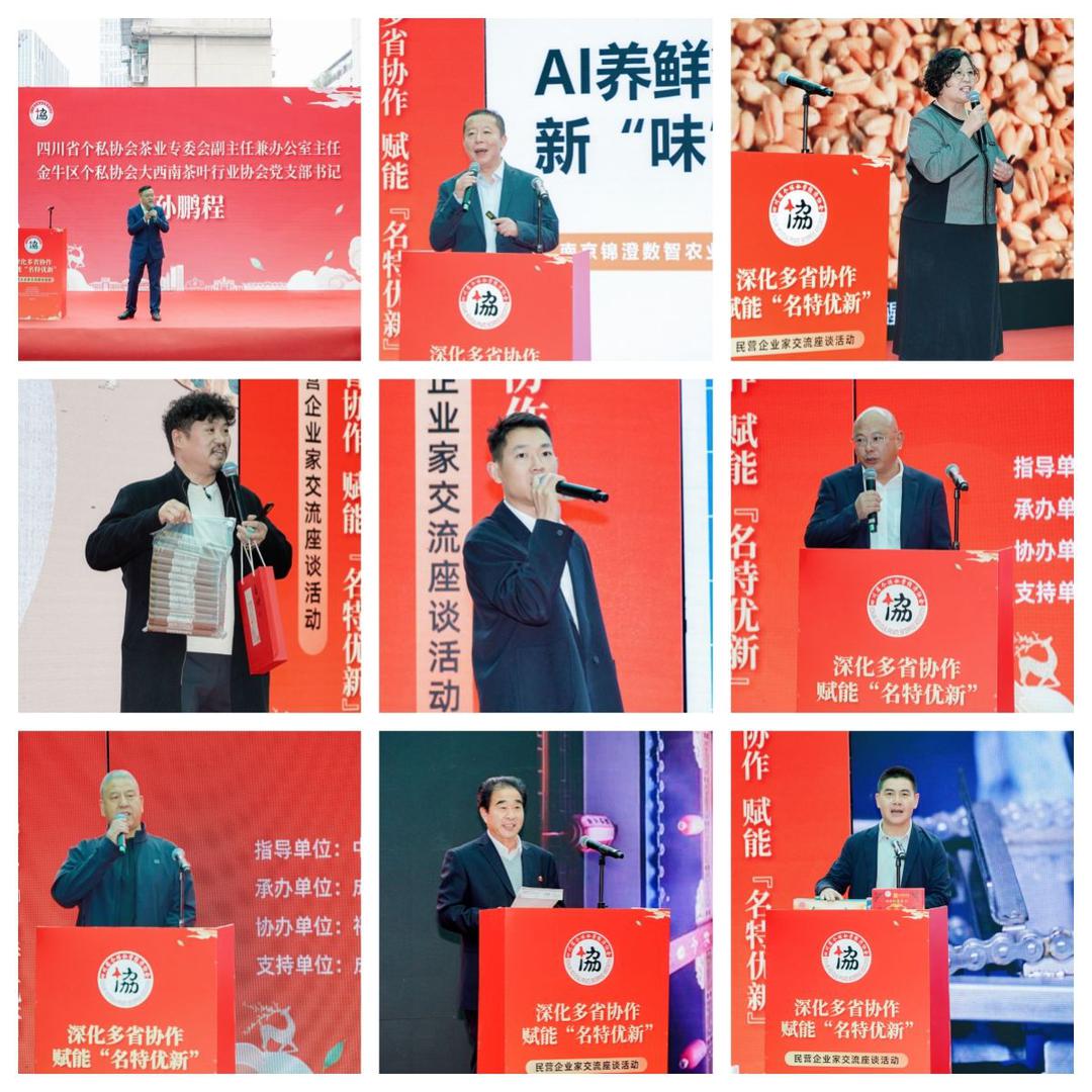 汇聚八方英才,共谋发展新篇。来自四川、重庆、黑龙江、山东、江苏、福建、湖北、云南、甘肃等九省市的200余家“名特优新”企业代表逾500人齐聚蓉城。与会企业家们围绕行业发展趋势、市场机遇挑战、技术创新应用等议题进行了深入交流,积极对接资源,广泛缔结友谊。