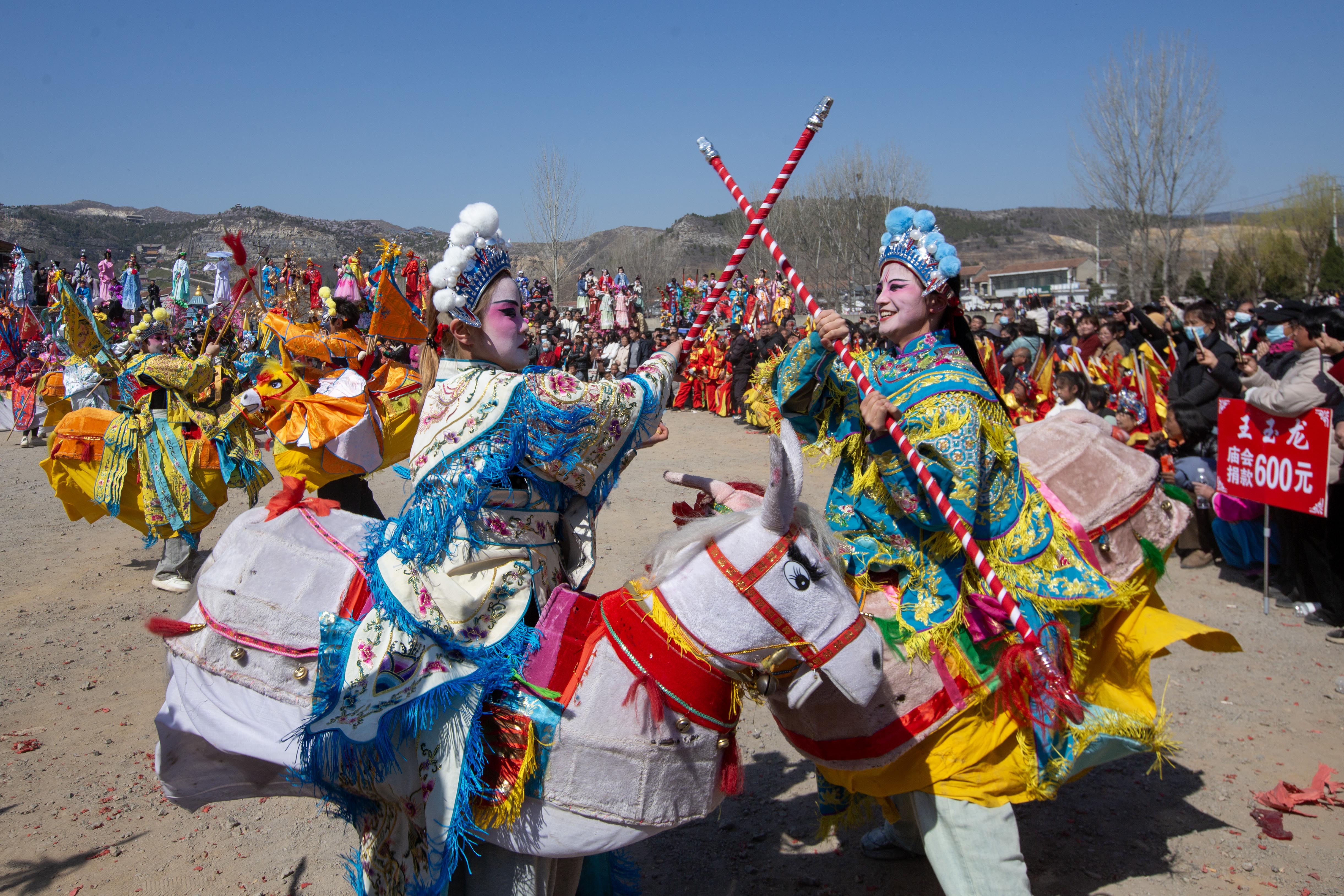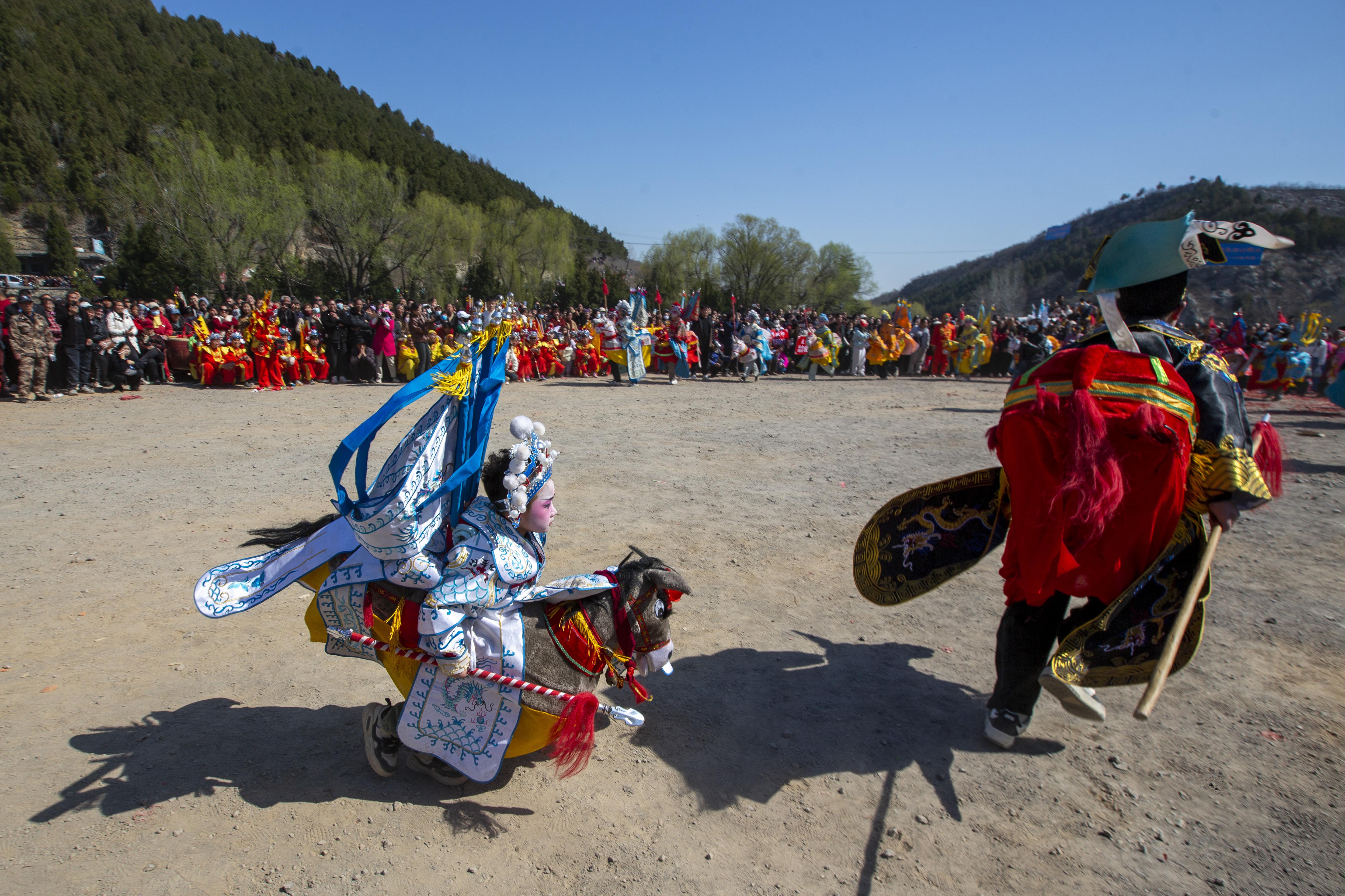 擅长文娱表演的村民纷纷彩妆上阵,都会拿出看家本领从昆玉山(长春观)景区广场出发,经过杨家坪、黑玉、白玉、南善应、西善应、北善应等村庄走街“过招”。