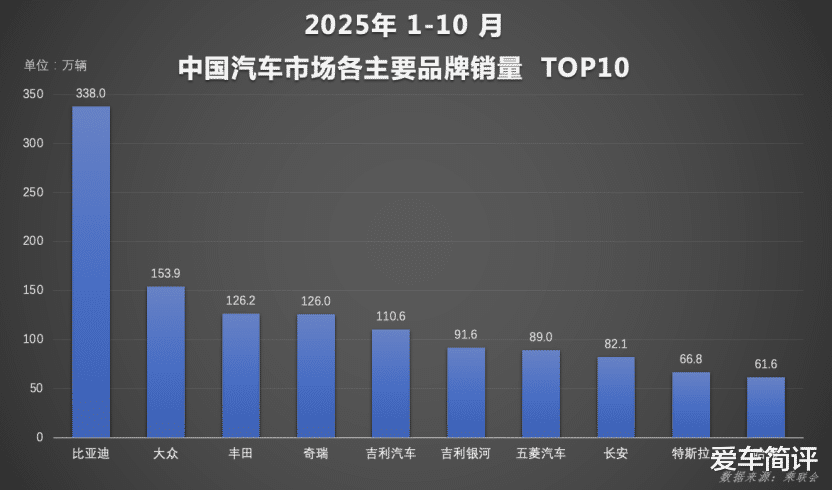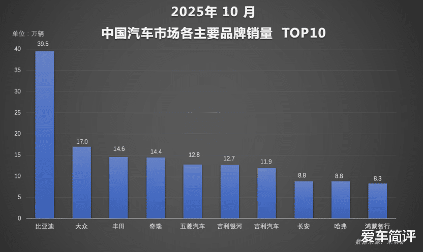 在这一浪潮中,比亚迪的领先优势愈发明显,前十月累计370万销量接近第二至第四名之和。其中,比亚迪汽车王朝网与海洋网10月销售39.5万辆,1-10月累计销量达338万辆,持续夯实规模基本盘。