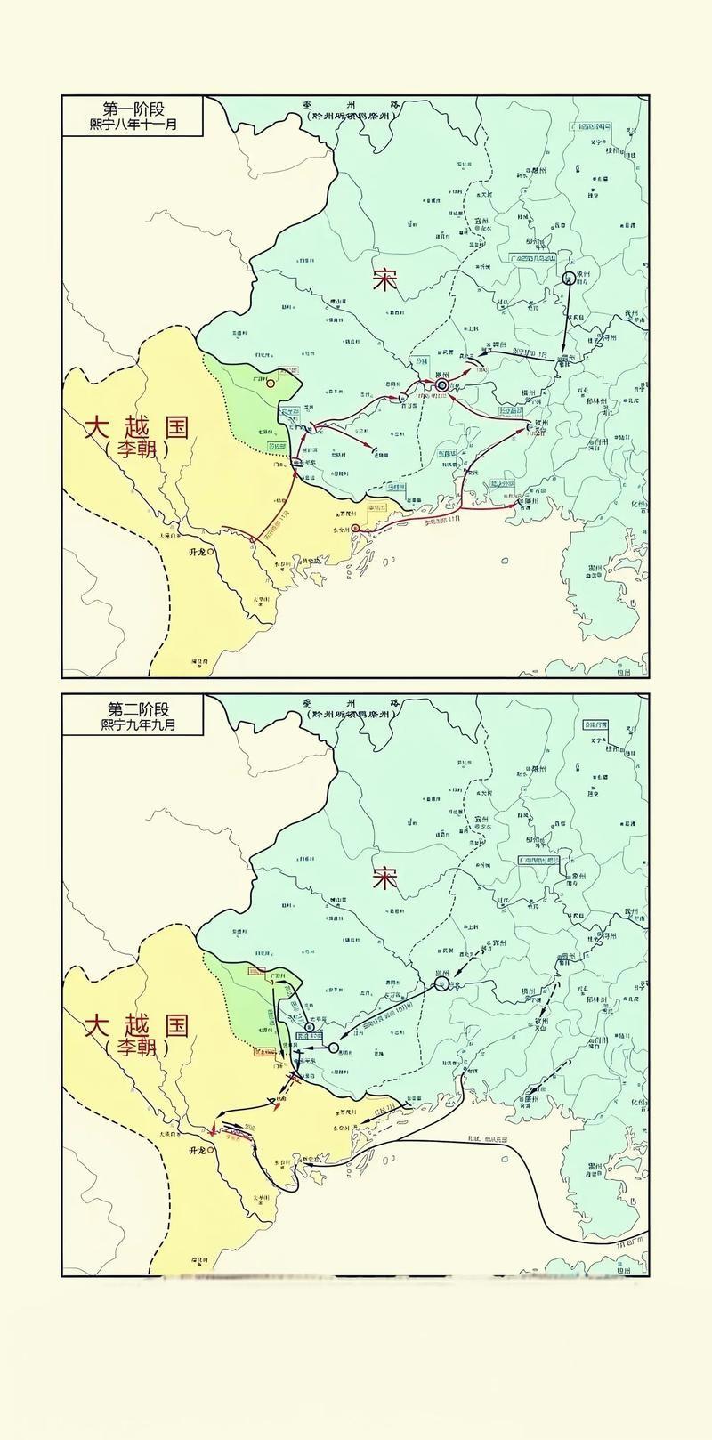 宋军反攻进展顺利,先后收复钦、廉二州,并于同年十月攻入李朝境内,夺取广源州。