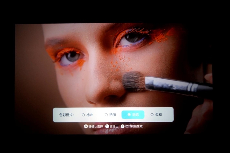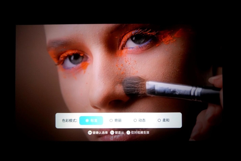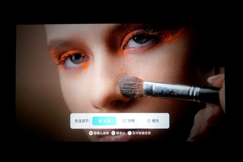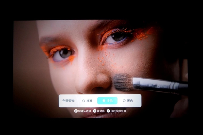 色彩方面我们将色彩模式设置为艳丽,色温设置为冷色,比较适合我们的播放环境和内容,用户也可以根据自己的播放环境和内容选择更适合自己的色彩配置。