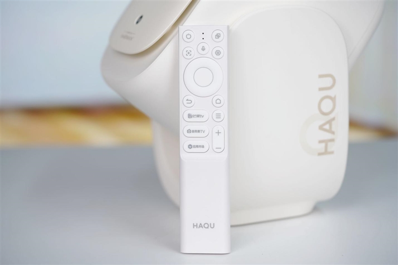 哈趣Q1 Pro投影仪标配的遥控器也是纯白设计,还专门提供了芒果TV和奇异果TV的一键直达。