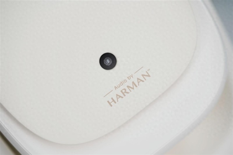 下半部分还有一个传感器镜头和Audio by HARMAN字样,标明了哈趣Q1 Pro投影仪内置的哈曼音响系统。