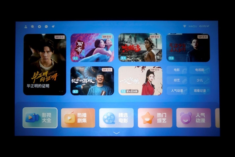 哈趣Q1 Pro投影仪内置64GB的存储空间,搭载了定制版的当贝超级AI OS和爱奇艺的视频内容,可以直接使用爱奇艺会员,开机无广告,使用起来十分舒服。
