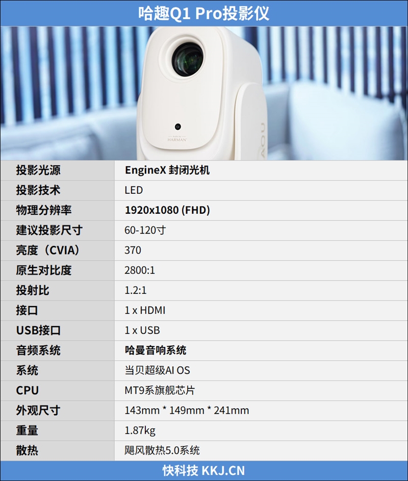 在百元投影仪这个级别的的产品上,哈趣已经推出了好几款投影仪,今天来到我们快科技评测室的,就是哈趣X哈曼联名的Q1 Pro投影仪,让百元投影机又多了一个选择。