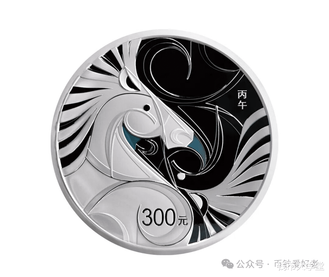 1公斤圆形银质纪念币背面图案为装饰双马造型,并刊“丙午”字样及面额。最大发行量5000枚。