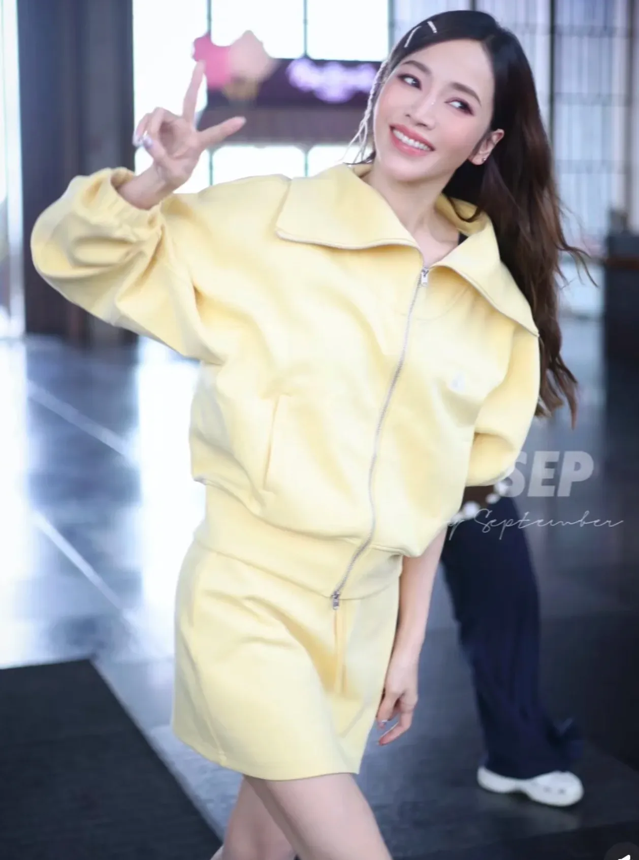 侯佩岑在穿搭中还非常注重细节。她善于利用配饰来增添整体造型的亮点,如精致的发夹。同时,她也非常注重色彩搭配和款式选择,比如嫩黄色卫衣搭配膝盖以上的迷你短裙,又能够展现出时尚感。