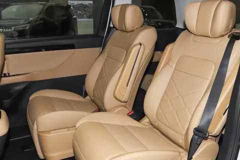 空间表现上,传祺 E8 + 的大四座和大七座布局都展现出了出色的空间利用率。大四座模式下,第二排座椅之间的通道宽敞,乘客上下车方便,而且每个座椅都能拥有极为充裕的空间,无论是腿部、头部还是横向空间,都不会有局促感。这种布局非常适合商务出行或者家庭中的小家庭使用,能让每位乘客都享受到舒适的乘坐环境。而切换到大七座模式时,第三排的空间也并不逊色,即使是身高 175cm 左右的成年人坐在里面,腿部也能有一定的活动空间,头部也不会感到压抑。这得益于车辆合理的空间设计,将每一寸空间都充分利用了起来。