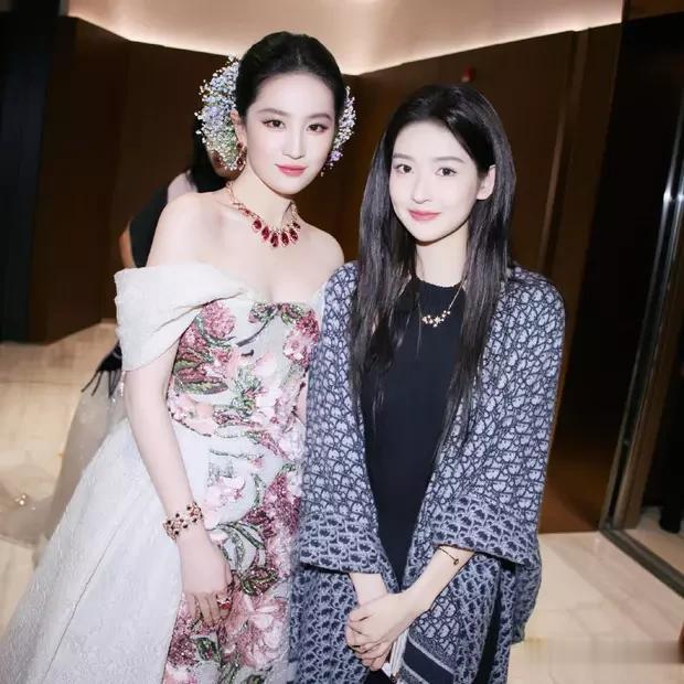 刘亦菲的繁花裙层层叠叠,转身时特意用手按住裙摆,怕不小心扫到王玉雯;合影时发现王玉雯比自己矮半头,她悄悄踮了踮脚,让两人在镜头里更和谐;拍完照还笑着捏了捏王玉雯的胳膊,“你这身黑裙子很酷哦”,一句话把对方的紧张全吹散了。