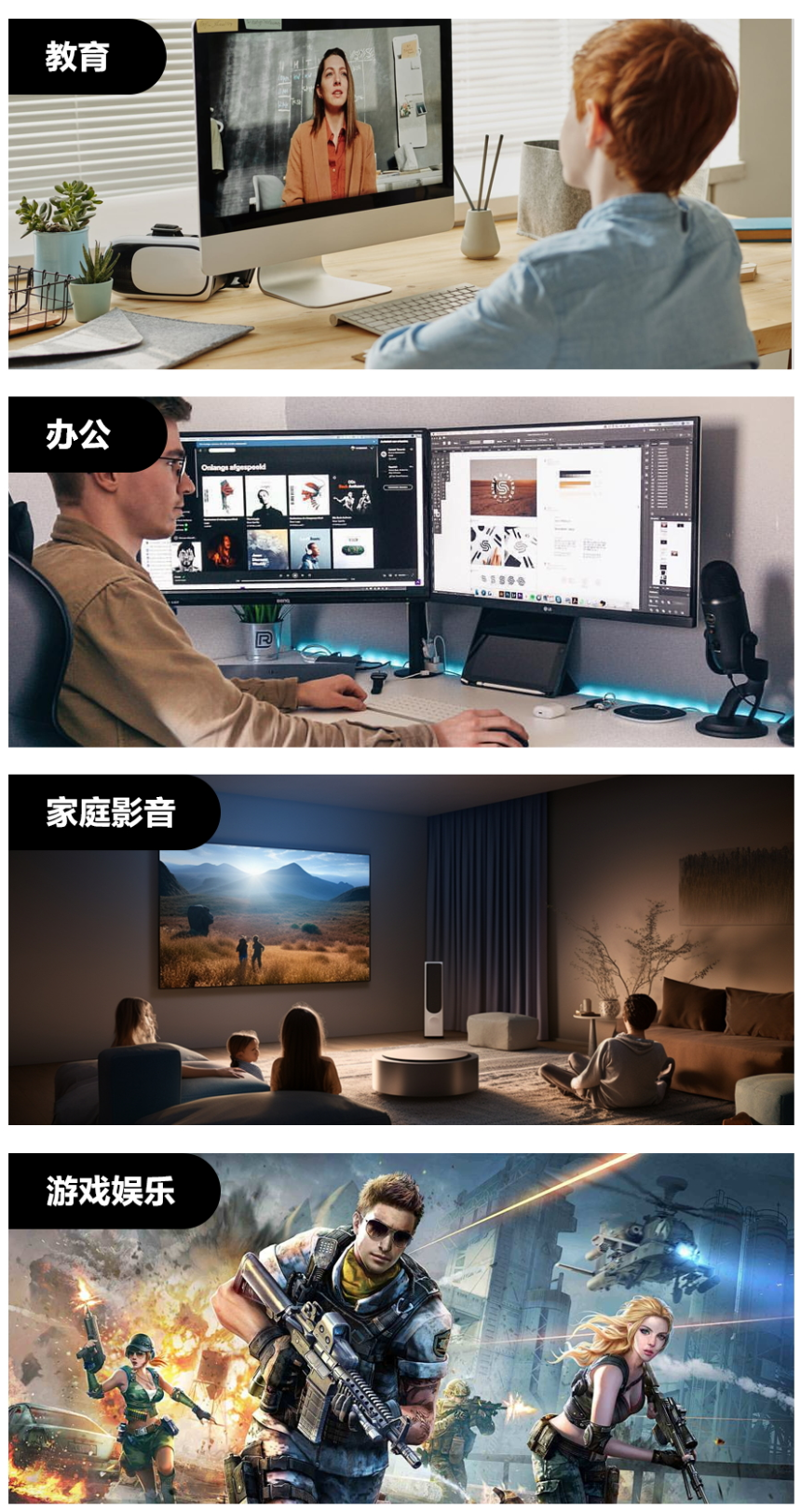 2. 家庭娱乐中心:通过2*HDMI 2.0+2*Type-C(全功能)接口实现四屏4K@60Hz输出,构建沉浸式影音空间