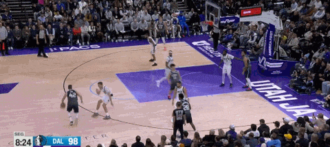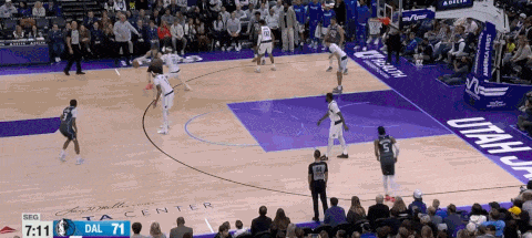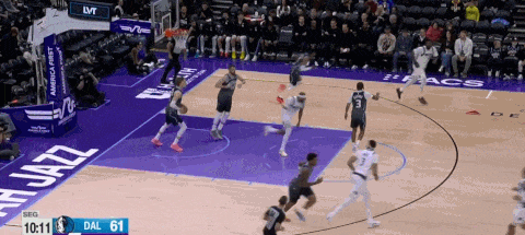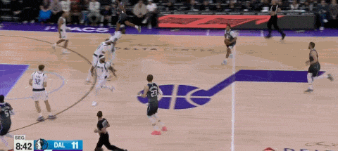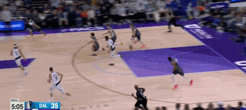 马卡后场拿球直接推动转换直接爆破禁区,面对独行侠的三人收缩快速传对角克莱顿命中底角三分,展现了马卡持球进攻中的观察预判和梳理能力。