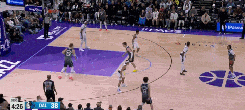 面对联防,中路马卡菲波乔治的三人配合,马卡借拉链掩护提上接球,这使得独行侠中路的防线被迅速破解,马卡跳传菲波,后者赶在浓眉协防到位前完成出手。