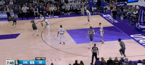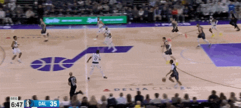 爵士进攻端左侧拉开空间,菲波和马卡打手递手被布威防接球限制,但马卡迅速切入和菲波完成接应,浓眉没有及时协助被甩掉的布威进行补防,再次被马卡切入轻松得分。
