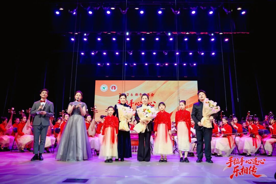 丝竹声声辞旧岁,乐韵飞扬迎新春。12月28日,“手拉手·心连心·乐相传”新年民乐音乐会温情上演。海淀区万泉小学与石景山区向阳小学以乐为媒、以艺会友,通过一场高水准的民乐盛宴,奏响两校友谊新篇,传递中华优秀传统文化的独特魅力。石景山区教育委员会主任孟驰、石景山区教委体卫艺术科科长汤塞力、石景山文旅局副局长黄杰、石景山区宣传部副部长白晓、石景山区融媒体中心副主任罗周智、中国广播民族乐团党委副书记苗涛、两校艺术顾问王志伟老师以及来自中国广播民族乐团、东方演艺集团、中央民族乐团、中国京剧院、北京市音乐家协会和关心关爱学校发展的各界人士,两校师生与家长代表们齐聚一堂,共同见证这场充满童趣与文化底蕴的民乐盛会。