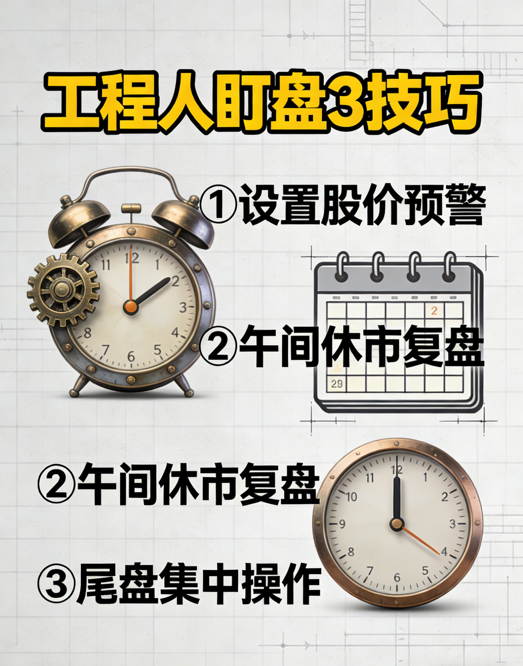 当然,工程人空余时间少,工地上忙得脚不沾地,哪有时间天天盯盘?我总结了3个碎片化盯盘技巧,亲测有效:一是设置股价预警,到了目标价位自动提醒,不用时刻盯着屏幕;二是午间休市复盘,利用工地午休的半小时,快速梳理盘面情况;三是尾盘集中操作,避开白天的波动,尾盘根据情况决定买卖,省时又省心。