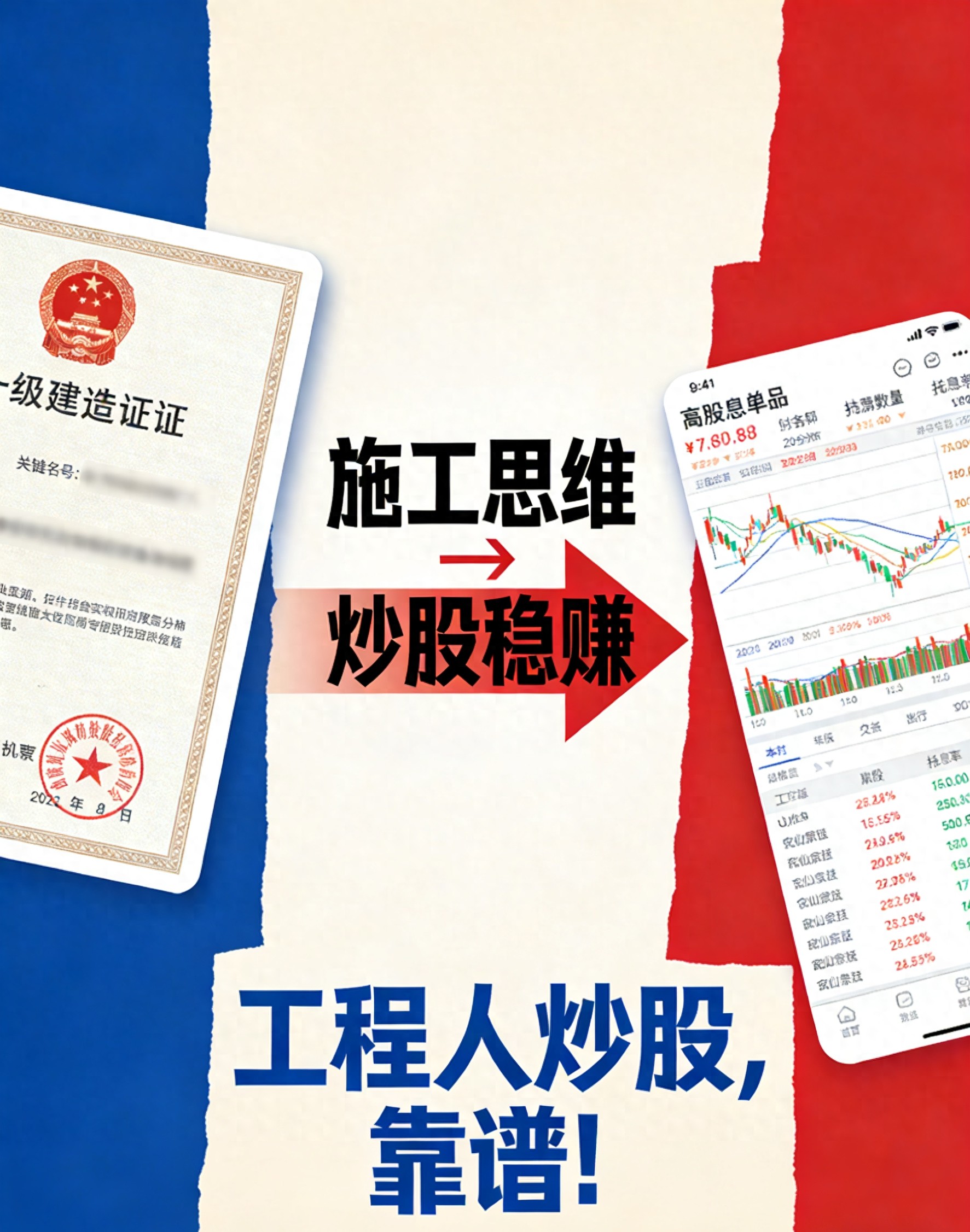 作为一名工程人,白天在工地对着图纸和钢筋水泥较劲,晚上回到家,换上睡衣,打开电脑,化身股民,在K线图里寻找财富密码。手握一建、二建(房建+市政)双证的我,炒股从来不用什么花里胡哨的技巧,全靠工程人的“施工思维”,在高股息的赛道上,赚得盆满钵满。
