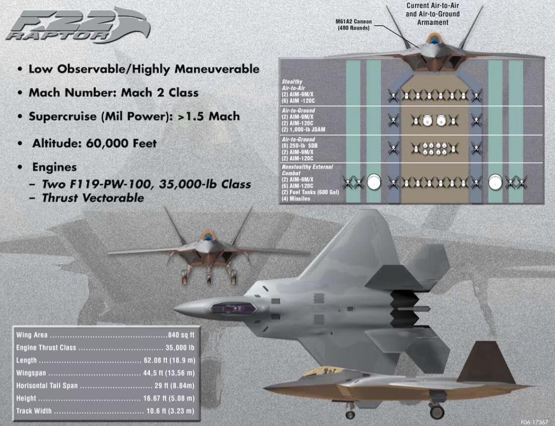 发动机型号:普拉特·惠特尼F119-PW-100涡扇发动机,具有二维推力矢量喷口
