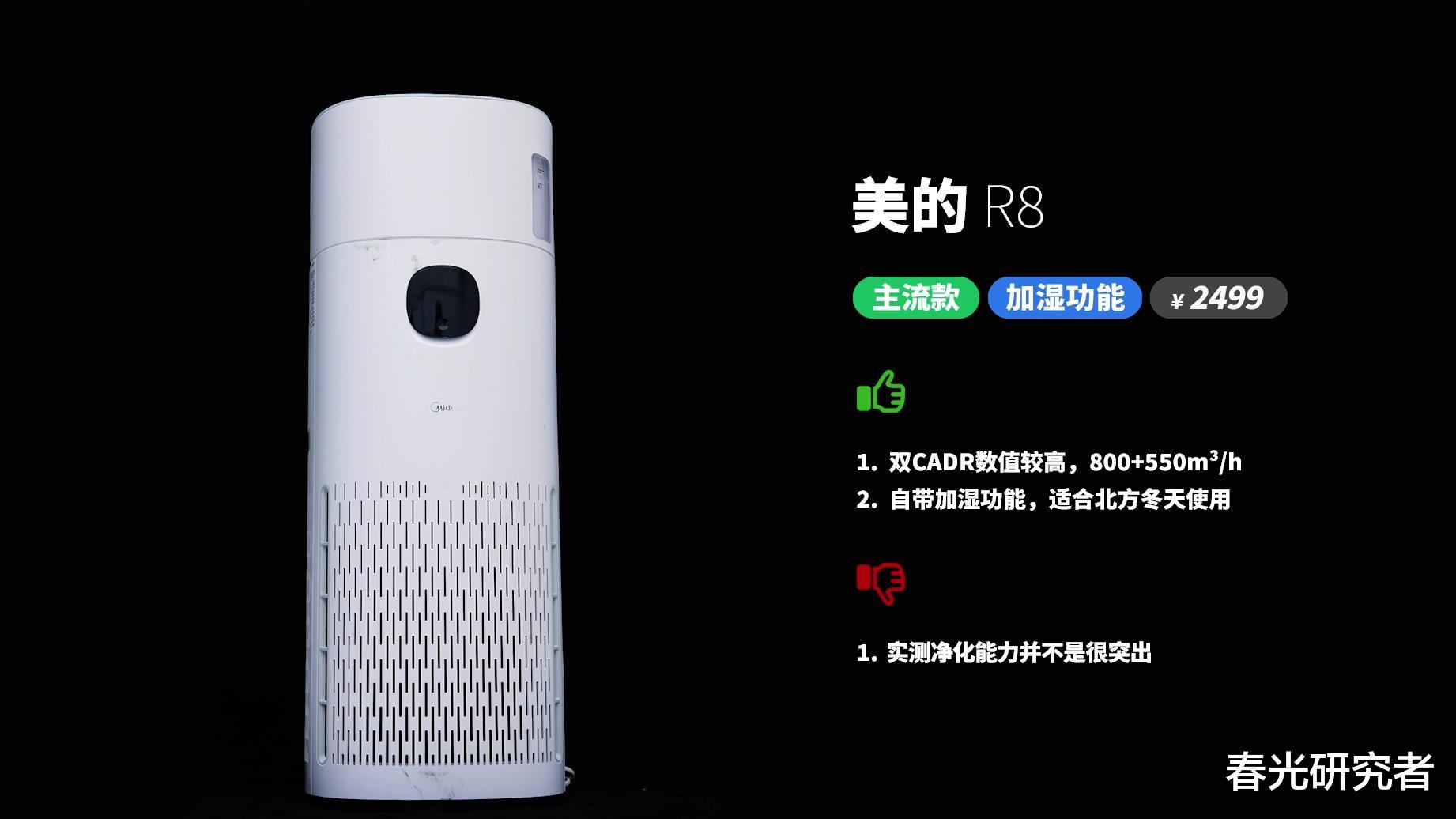 另外一款推荐美的的R8,净化能力并不是顶级,但是它胜在多样化,增加了加湿功能,冬天用起来体验会更好。