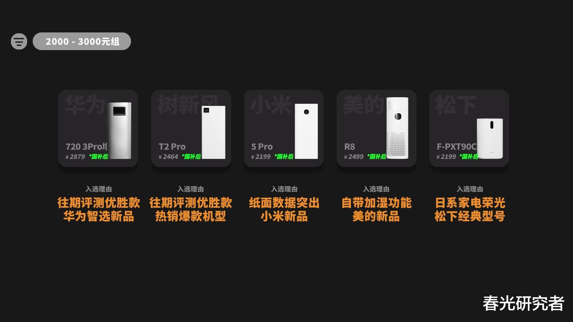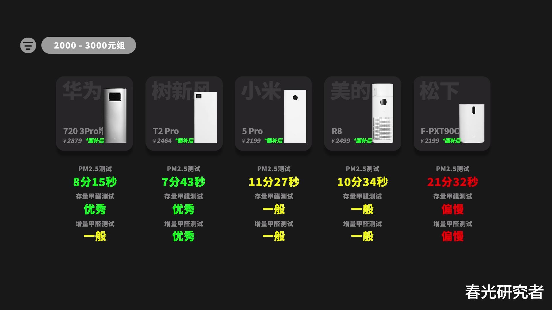 接着是2-3000元组别,华为720 3Pro增强版和树新风T2 Pro相对会比较便宜,单日使用成本在1块钱左右,还可以接受。但是小米和松下要超过2块钱,看完默默捂紧钱包。