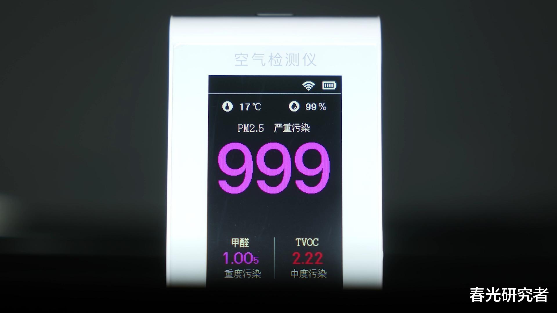 在各款的能见度都会到测试前的水平之后,再放入PM2.5检测仪继续测试,果然,表面上是干净了,结果全部都是999爆表。