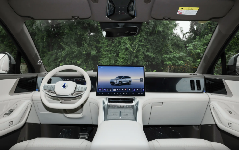 颜值方面的话,这台腾势N8L给人的感觉方方正正,显得非常正经,像前脸的灯组方面,它的大灯组更是C字形的设计,在点亮后的辨识度上倒是也不算差,且在前包围方面,车辆更是采用了梯形的通风槽设计,在运动质感的表现上,显然是不差的。而在侧身的线条处理上,腾势N8L也是采用了流畅的线条处理,且车窗方面也是双层隔音玻璃,保障了车内驾乘者的静谧性。