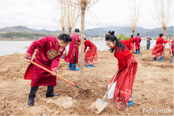 活动当天,还举行了植树活动,在美丽的东江边,新人们共同种下“同心树”,这场以生态为底色的集体婚礼,正悄然重塑岭南乡村的婚嫁文化。