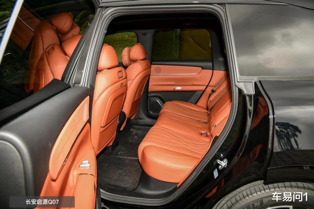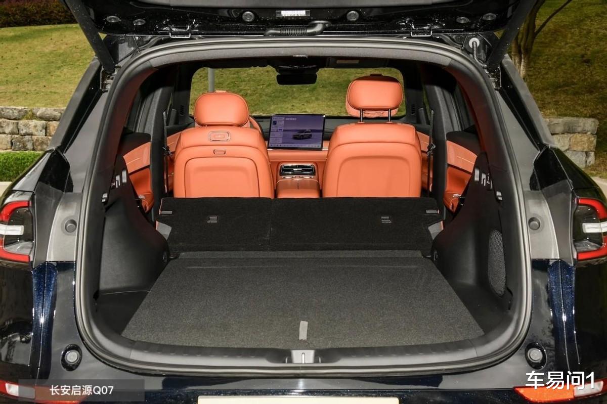 再来是空间表现,长安启源Q07毕竟还是大了一圈,我觉得这内部会更适合一家老小坐满出行。其中呢,后排的层高为1238mm,既能出入更方便、也让孩子有富余的活动空间。同时呢,它的后备厢是双层可调的,不放倒就有763L,下面堆一家子的行李,上面放些饮用水、孩子的玩具什么的,途中要用也方便。