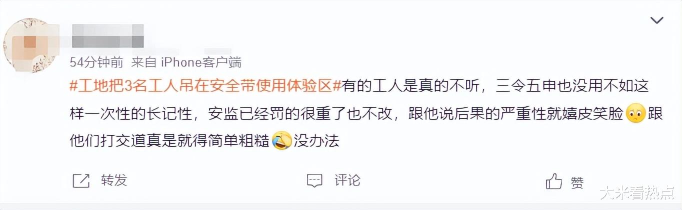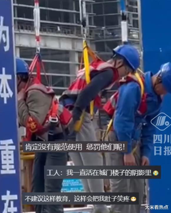 有人狂点赞:“工地不是游乐场,安全帽都戴不利索的人就该长长记性!”