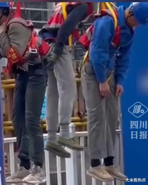 工地负责人火速回应:这是安全带体验区的常规培训项目,专门针对高空作业风险。