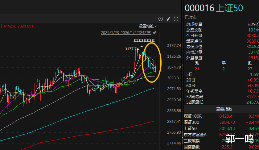 受特朗普宣布不对八国征收关税的利好影响,美股回升、亚太市场全线走强,A股虽一度跟风拉升,但力度有限且盘中出现跳水,尾盘虽整体回升,但力度稍弱。更为值得关注的是,上证50指数已迎来八连跌,市场成交近期整体相对萎缩,叠加蓝筹板块内部的显著分歧,A股或仍处降温周期,资金避险情绪与调仓需求同步升温。保险、银行、工程机械等权重板块持续压制指数,而石油、军工、电信运营板块逆势护盘,形成鲜明对比。