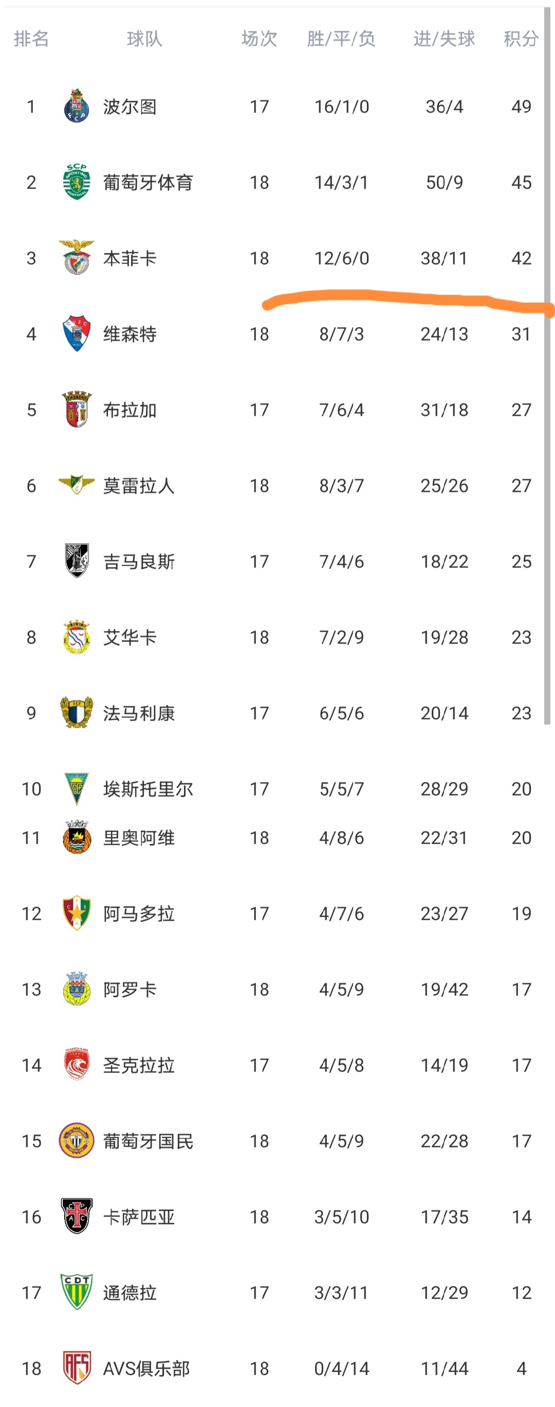 今天凌晨,葡超的第18轮结束4场较量,本菲卡、维森特等队出战,这几场比赛过后,葡超积分榜更新,我们来看看。