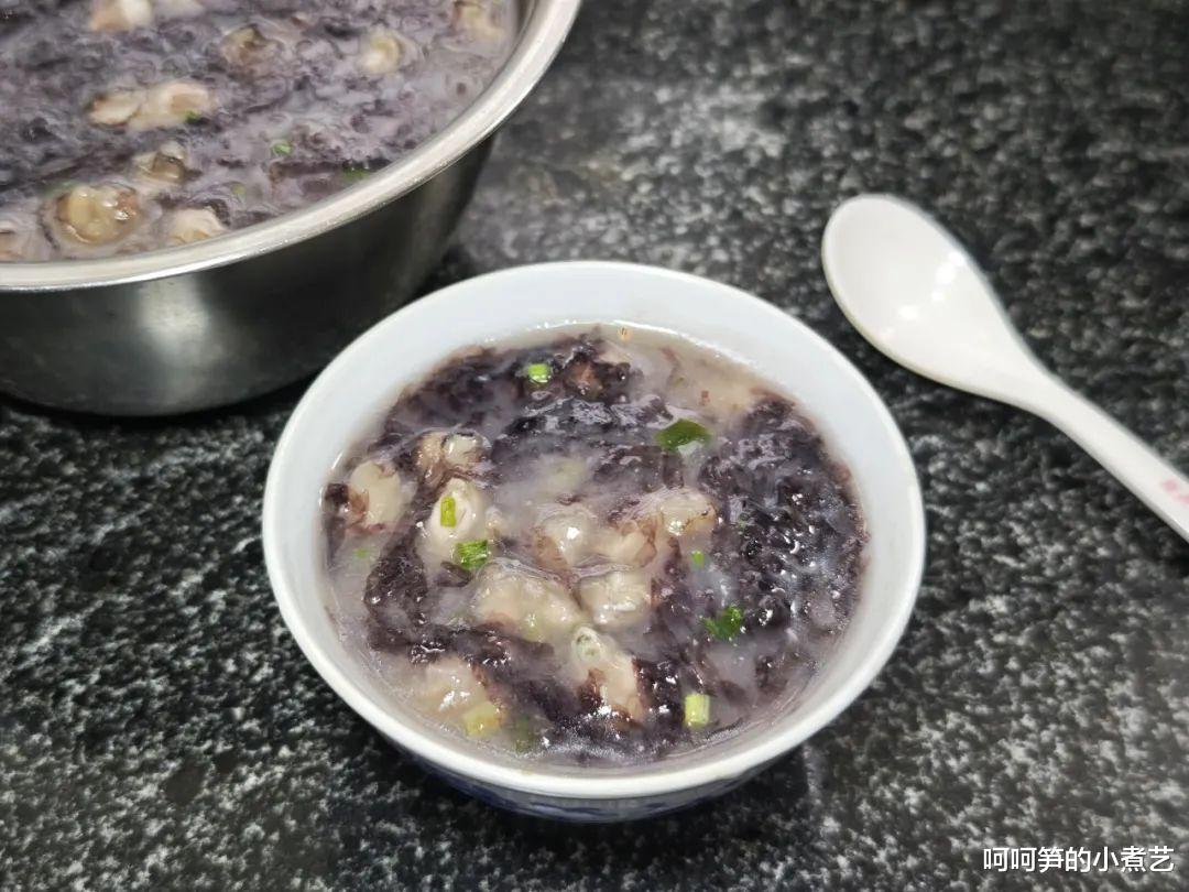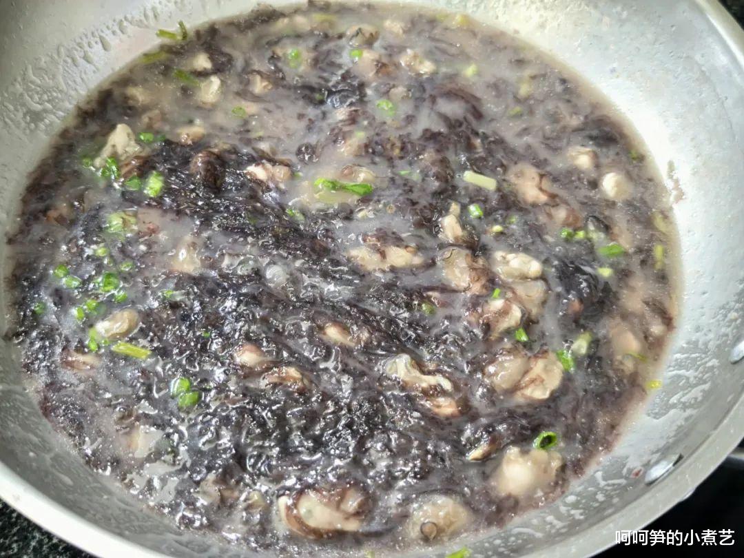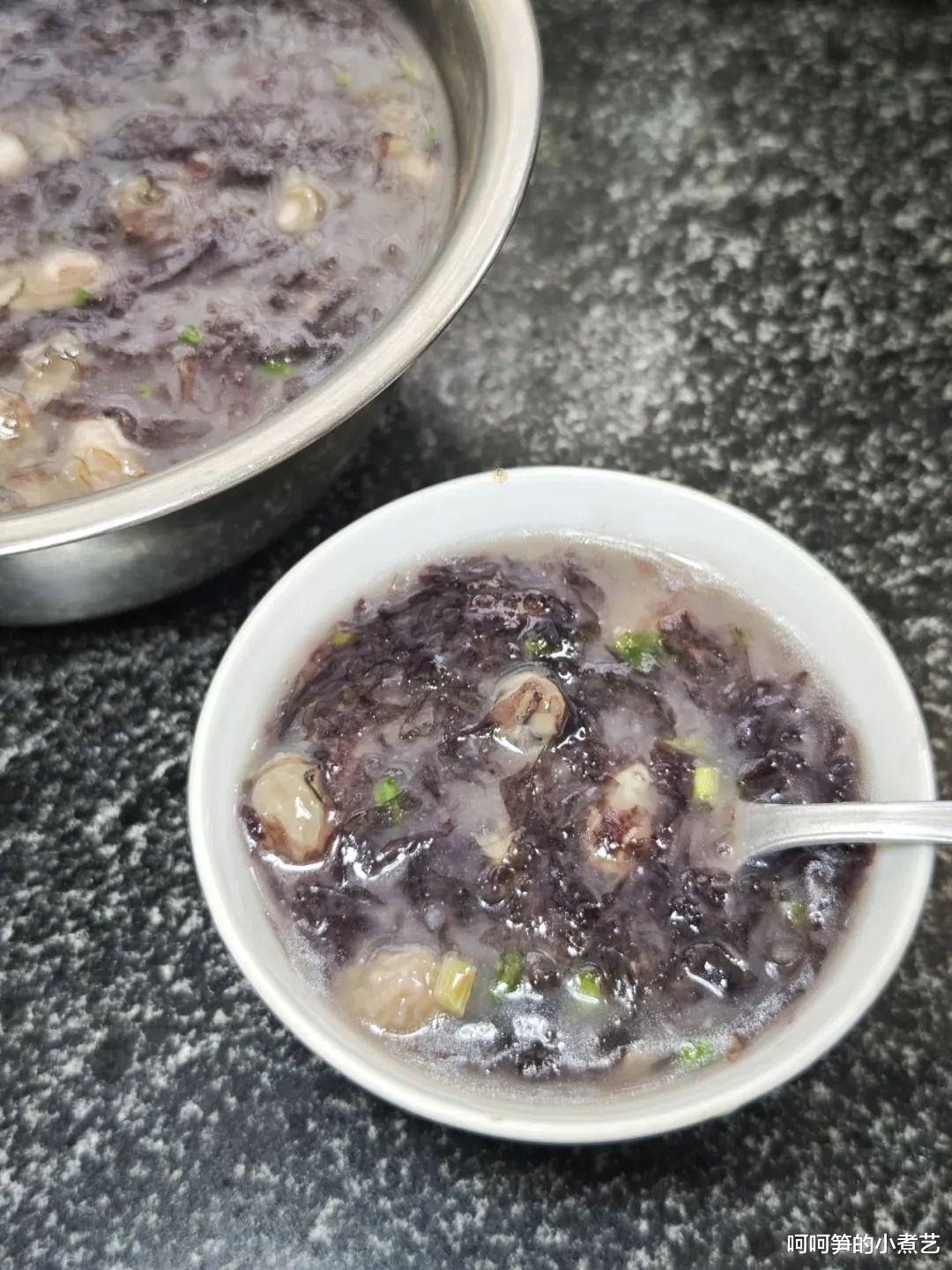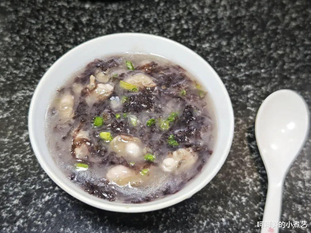 新鲜的海蛎加点盐抓洗干净,搭配上紫菜,不需要额外调味,鲜美的很,怎么吃都吃不腻,不想煮菜的时候煮上一碗,下饭得很。