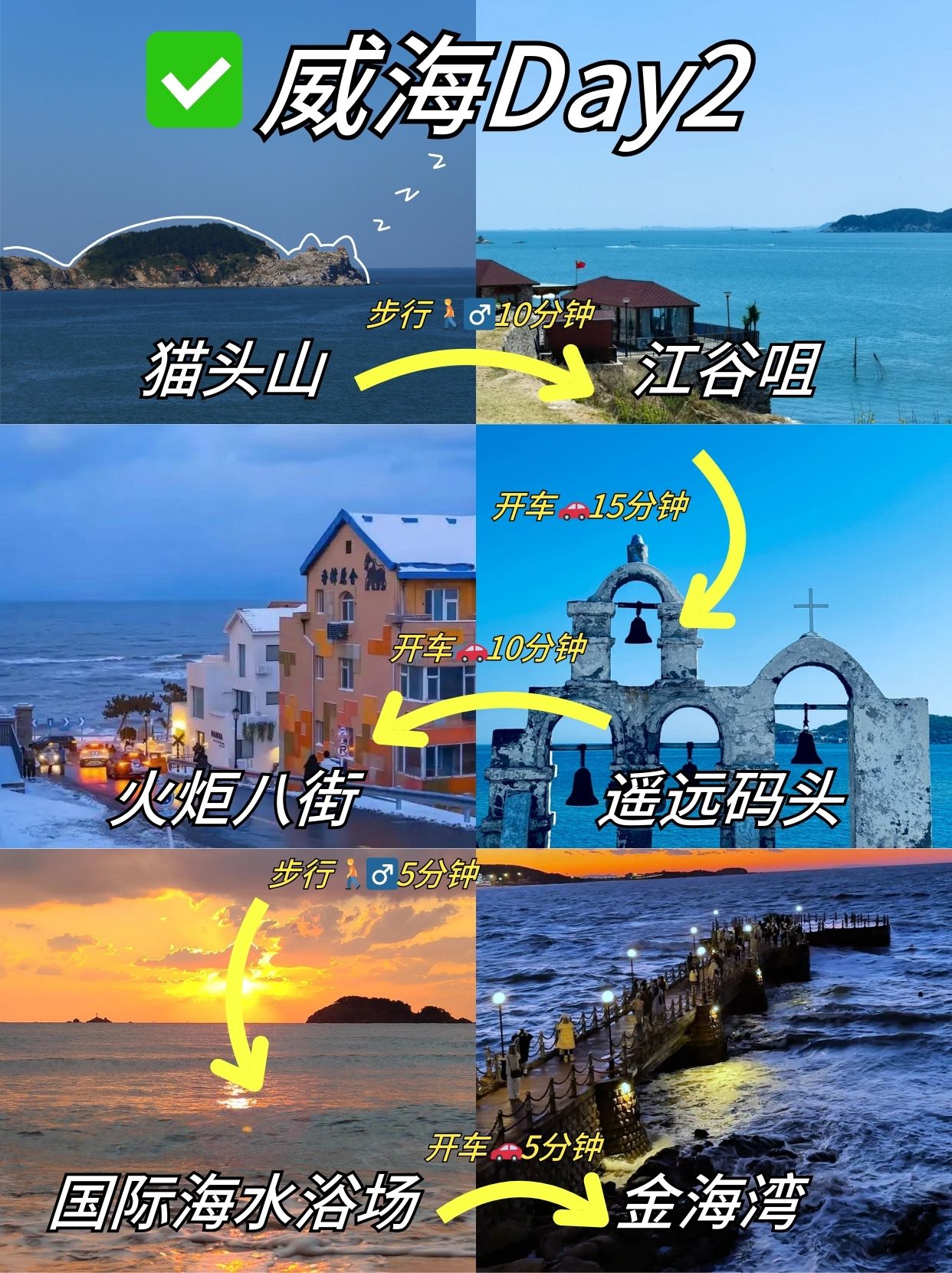 ✔️建议住环翠区市中心,离火炬八街、威海公园这些热门景点都近,选步行能到公交站的民宿或酒店,出行超方便