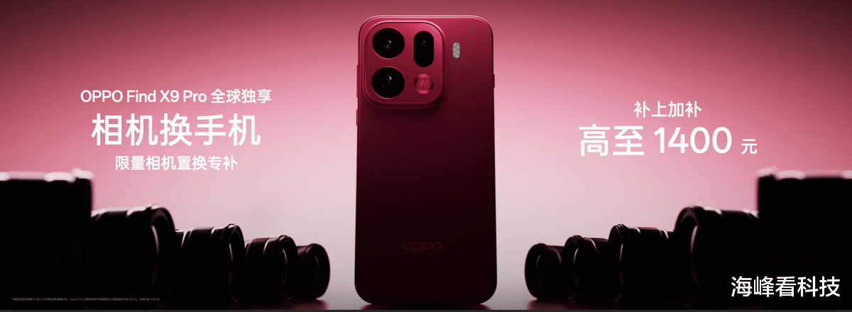 同时,OPPO 还推出“相机置换专补”计划,用户可以参与活动将自己手里的相机置换为 Find X9 Pro ,可享受官方至高 1400 元补贴。