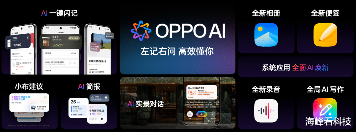 Find X9 系列首发搭载全新 ColorOS 16 系统,通过底层编译、性能调度与动画渲染优化,实现 6 年久用全场景丝滑流畅。生态互联方面,解决跨设备连接痛点,支持与 iPhone、Apple Watch、AirPods 及 Mac 的无缝协同。专属 AI 按键打造“左记右问”体验,“一键闪记”升级支持长视频总结与智能日程,“AI 实景对话”实现镜头对准物体即问即答,相册新增 AI 补光一键拯救光照不足或逆光的废片,让 Find X9 系列成为 2025 年最值得购买的 AI 硬件。