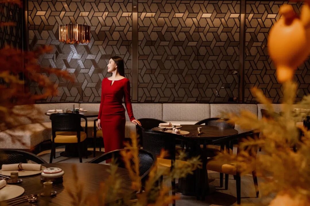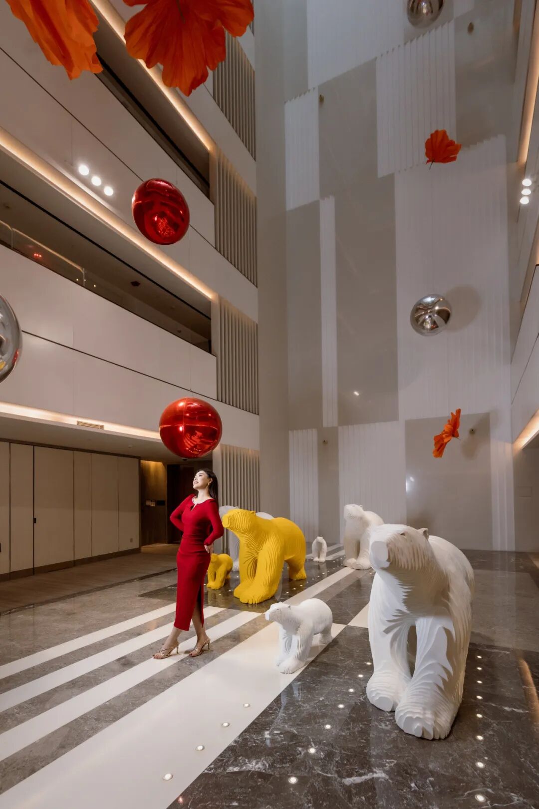 而酒店也早已换上新春限定“皮肤”,将热闹年意藏于每一处空间,尤其3楼的新春主题艺术装置颇具巧思。一朵朵艳红花朵与莹亮银球从天花板垂落,光影流转间,把新春的鲜活与雅致演绎得淋漓尽致,氛围感拉满。