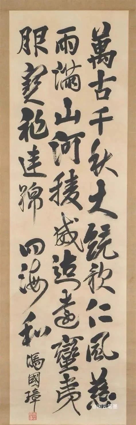 这幅字以其老辣的用笔、劲健挺拔的形态、威武的气势和高古的韵味,成为了一件不可多得的艺术珍品。它不仅展现了书法家的高超技艺,更传递了一种超越时空的艺术精神和人文情怀。这幅字,如同一扇窗口,让我们得以窥见一个丰富多彩、深邃博大的艺术世界。