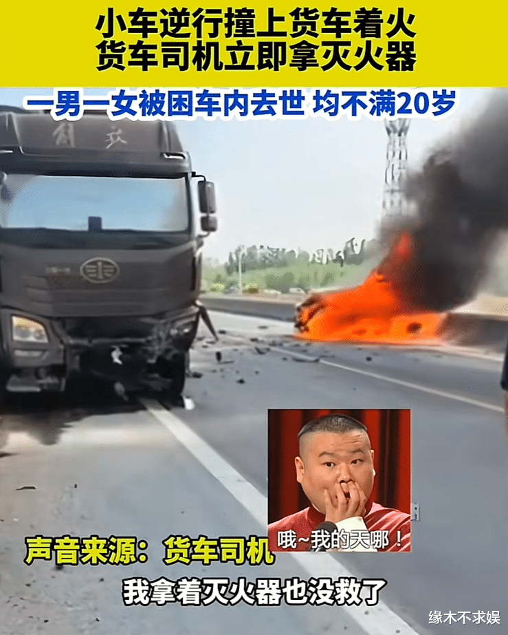 货车司机接受采访,表示小车是从对面向自己撞过来,当时自己有些懵了。虽然赶紧踩下刹车,但对面的小车还是着火了。货车司机连忙拿着灭火器想去灭火,可是火势实在太大,最终被困在车内的两人被烧死了。