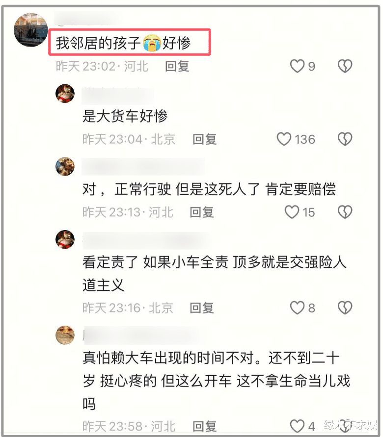 看到这揪心的一幕,网友也是心疼不已。一位河北IP的网友表示,去世的是他邻居的孩子,言语之间满是心疼。