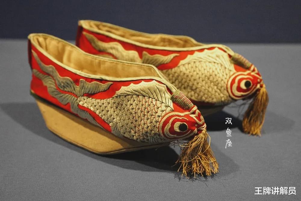(缎绣金鱼纹女棉鞋,清代,故宫博物院藏)
