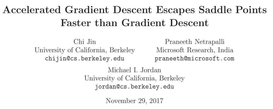 金驰与合作者给出了明确答案:对于一大类函数,鞍点不是根本性障碍。