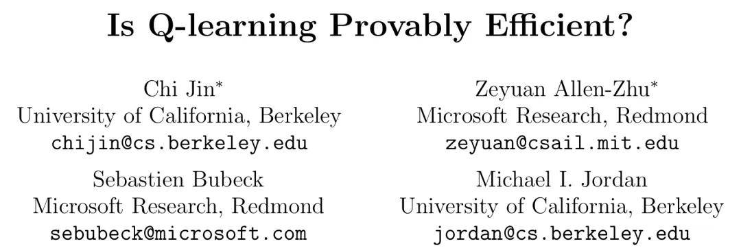 论文标题: Is Q-learning Provably Efficient?,NIPS 2018 论文地址:https://arxiv.org/abs/1807.03765